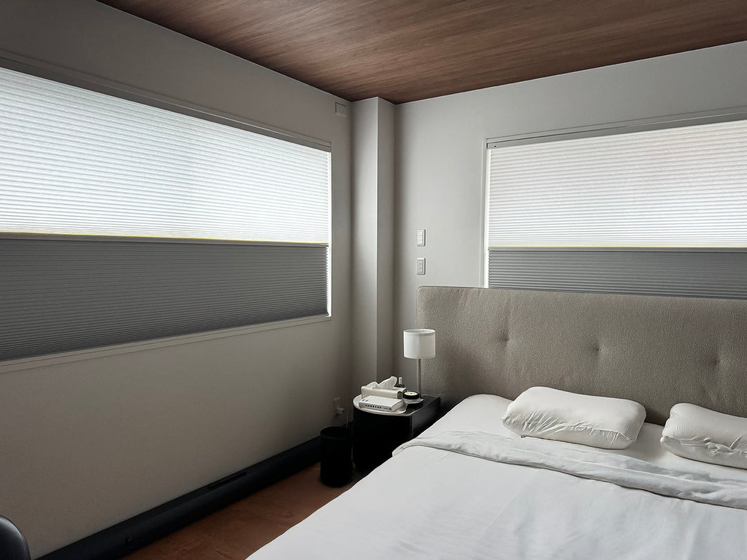 窓枠内にきれいに収まるスッキリした見た目に惹かれて、既製品のカーテンをMoodify電動ハニカムシェードに切り替えました。